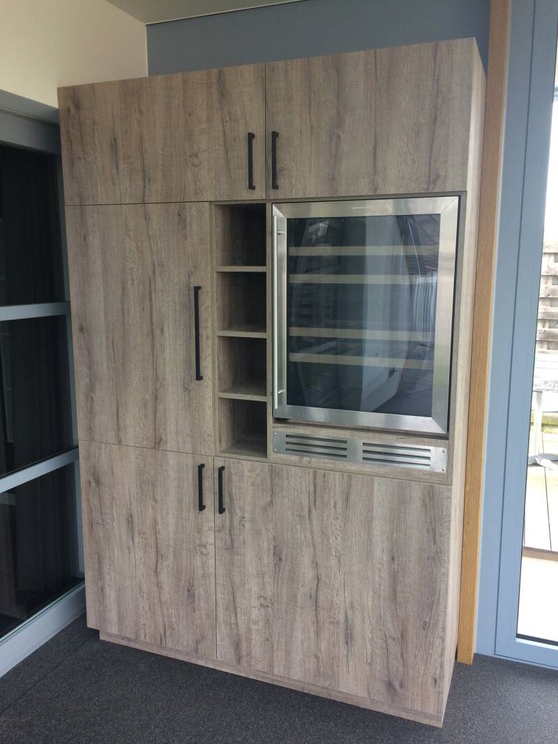 - In de kast de bestaande wijnkoeler inbouwen, Nieuwe koelkast en schuif