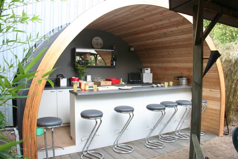 - Moderne buitenkeuken in halfronde vorm.