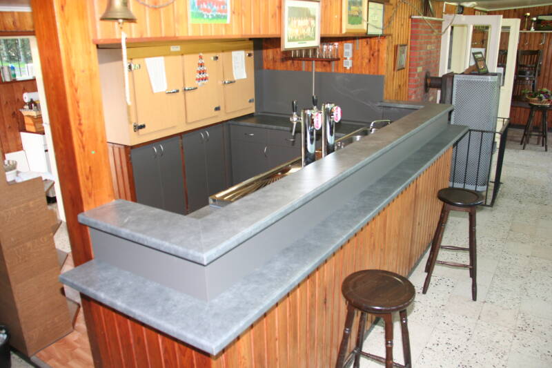 - Nieuw blad op het toog-meubel van een kantine.