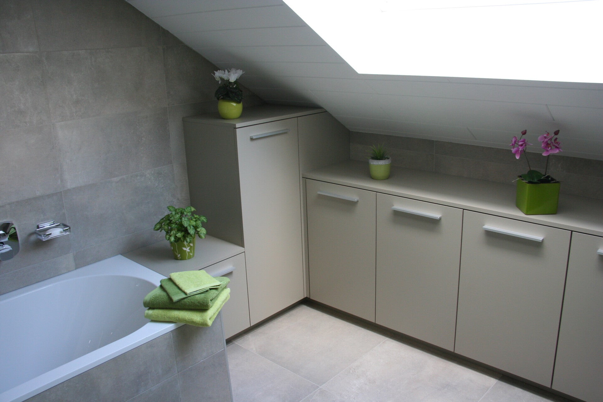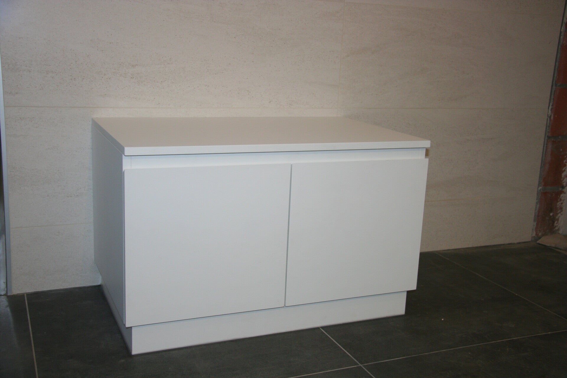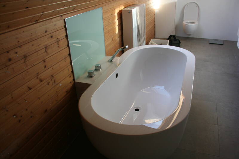 - Links nog een laag kastje om uit te vullen tot de badhoogte.