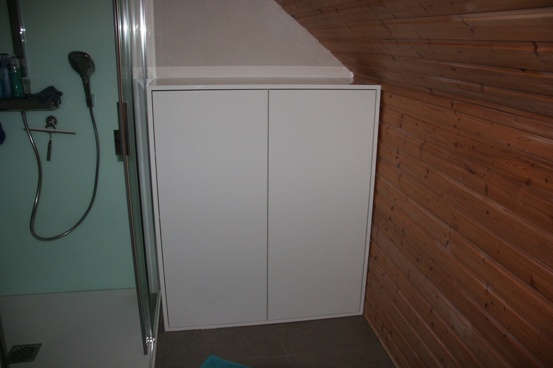 - Dubbeldeurs-kastje naast douche.