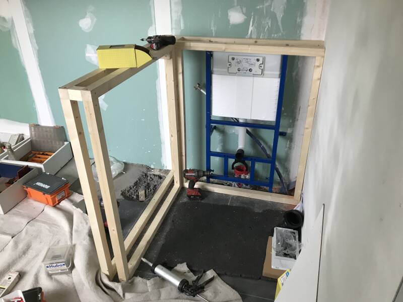 - Wandbekleding achter hangtoilet.