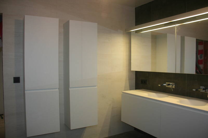 - Hangtoilet, designbad, badmeubel, spiegelkast met Led-verlichting.