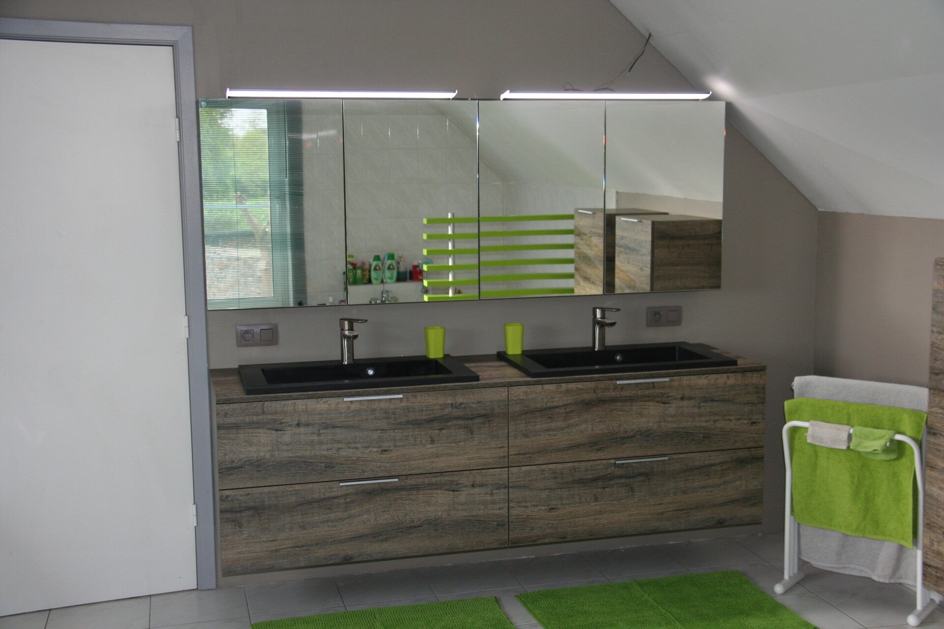 - Ledverlichting boven de spiegelkasten