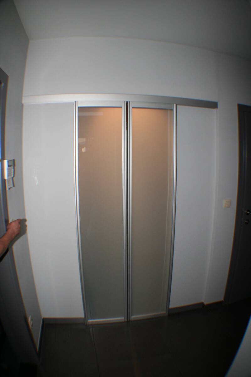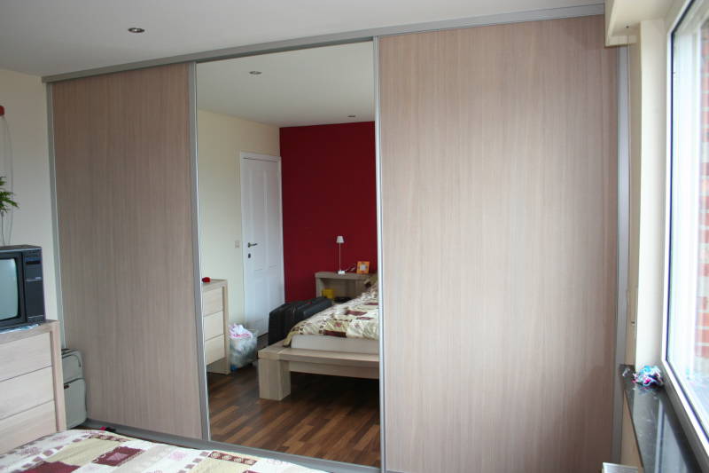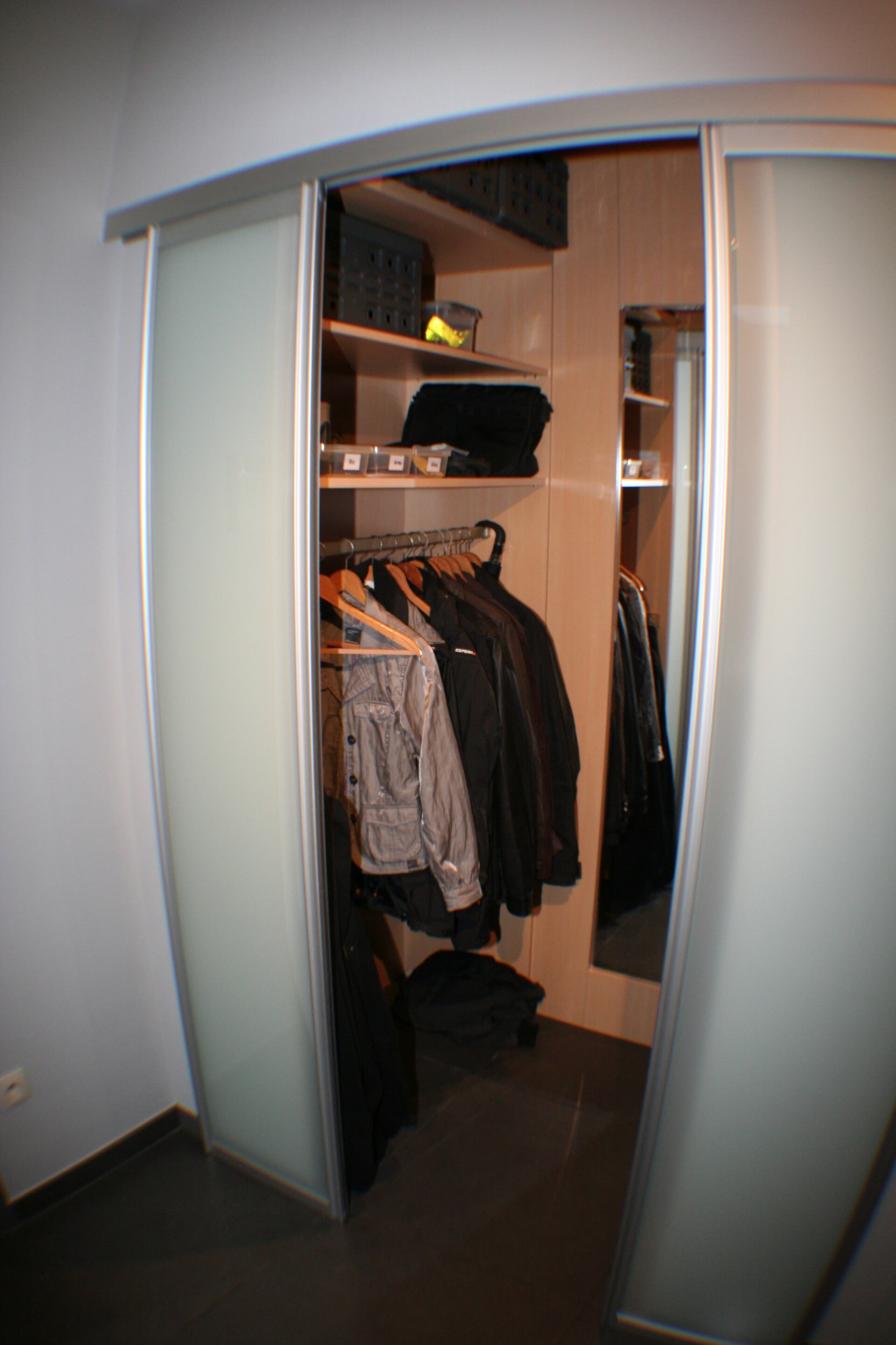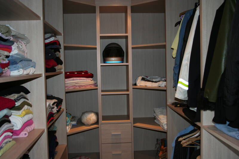 - Dressing langs drie wanden, inclusief twee schuine hoekkasten.