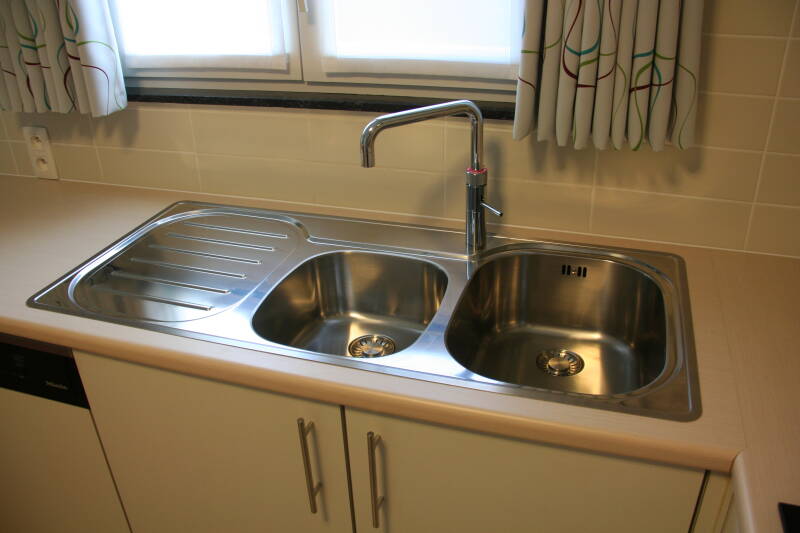 - Er werd ook een nieuwe spoelbak ingewerkt en voorzien van een Quooker-kraan met koud,warm en kokend water.