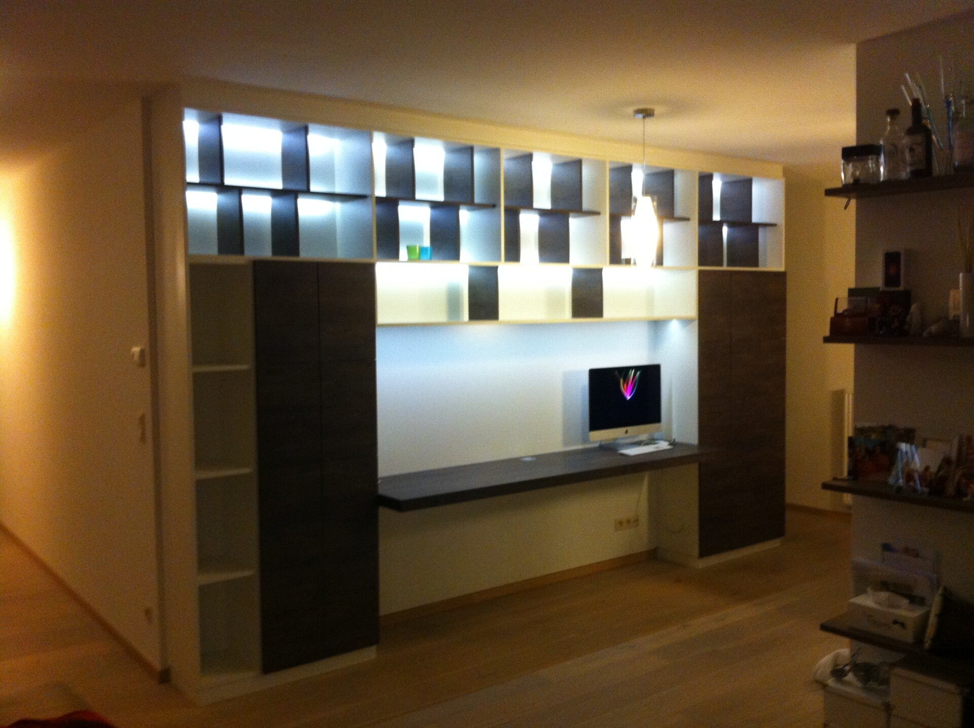 - Inrichting van de bureau met berging en tevens de technische installatie aan het zicht onttrekken.